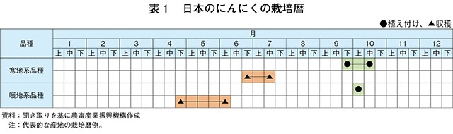 (2)主産地の栽培暦および栽培品種