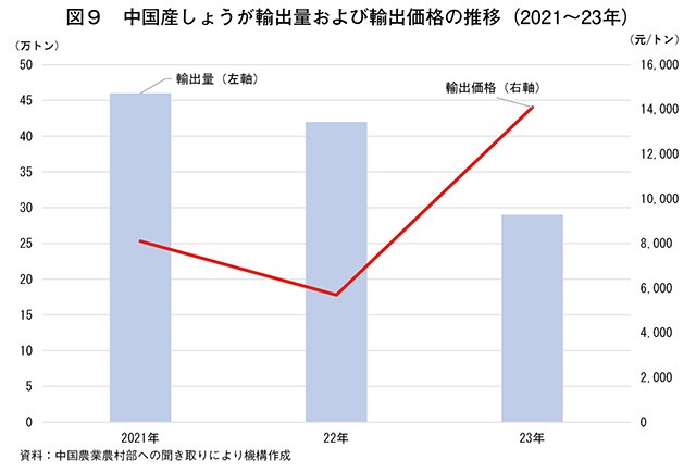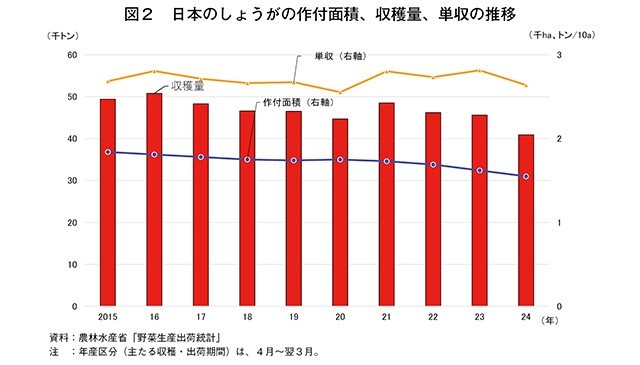 これまで、中国のしょうが栽培では安価な労働力を集中投下してきたが、近年は若者の農外流出などによる農村労働力不足や、内陸部からの出稼ぎ労働者が他産業に就業してしまうことなどから、農業企業などでは労働力確保が課題となっている。労働力を確保できても、年々上昇する他産業並みの賃金を労働者に支給できないと離職を招くことから、今後も人件費の上昇による生産コストの押し上げと収益性の低下が懸念される。