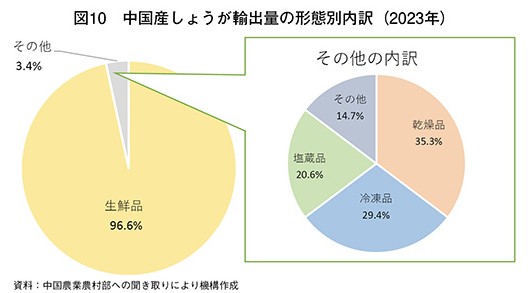 萊蕪片姜」である(表7)。萊蕪片姜は同省済南市萊蕪区で2000年以上栽培されてきた伝統的な大しょうが品種であり、中国国内では生食、調味料、酒類、健康食品原料のほか、漢方薬原料としても多く利用されている。萊蕪片姜は1985年に農業農村部品質製品賞を受賞し、2008年に国家地理的表示認証商標、17年に中国十大野菜ランドマークブランドに指定されるなど、中国国内で高い知名度がある。また、萊蕪片姜は近年、作付けが増加している萊蕪