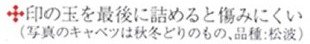 圃場に貝殻が存在するなど、土壌にミネラルが豊富であることが特徴で、その土壌で栽培されるキャベツは適度な歯ごたえがあり、みずみずしさと甘みのあるものが出来上がる。