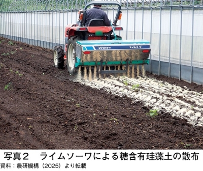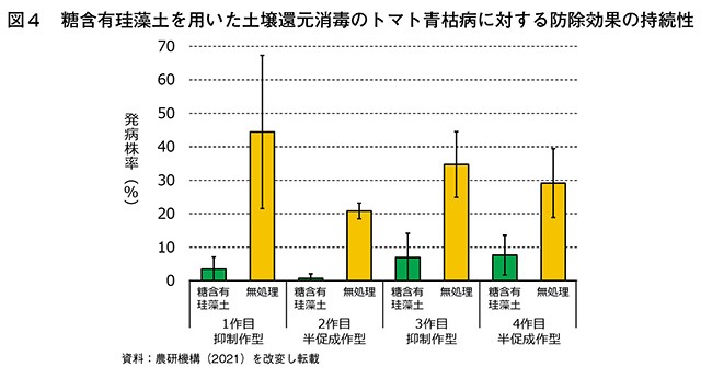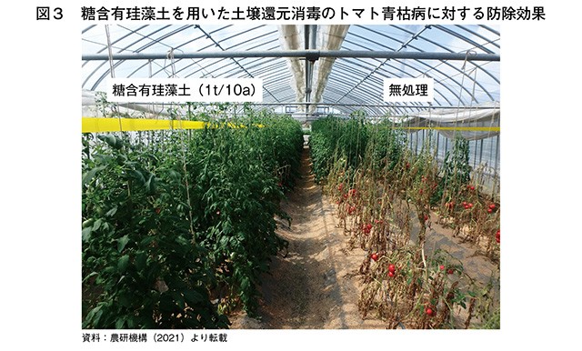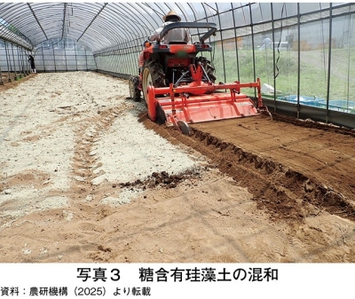 (4)野見山孝司(2025)「新規資材「糖含有珪藻土」を活用した土壌還元消毒技術」『農研機構研究報告』第20号:53~60.doi: 10.34503/naroj.2025.20_53、国立研究開発法人農業・食品産業技術総合研究機構